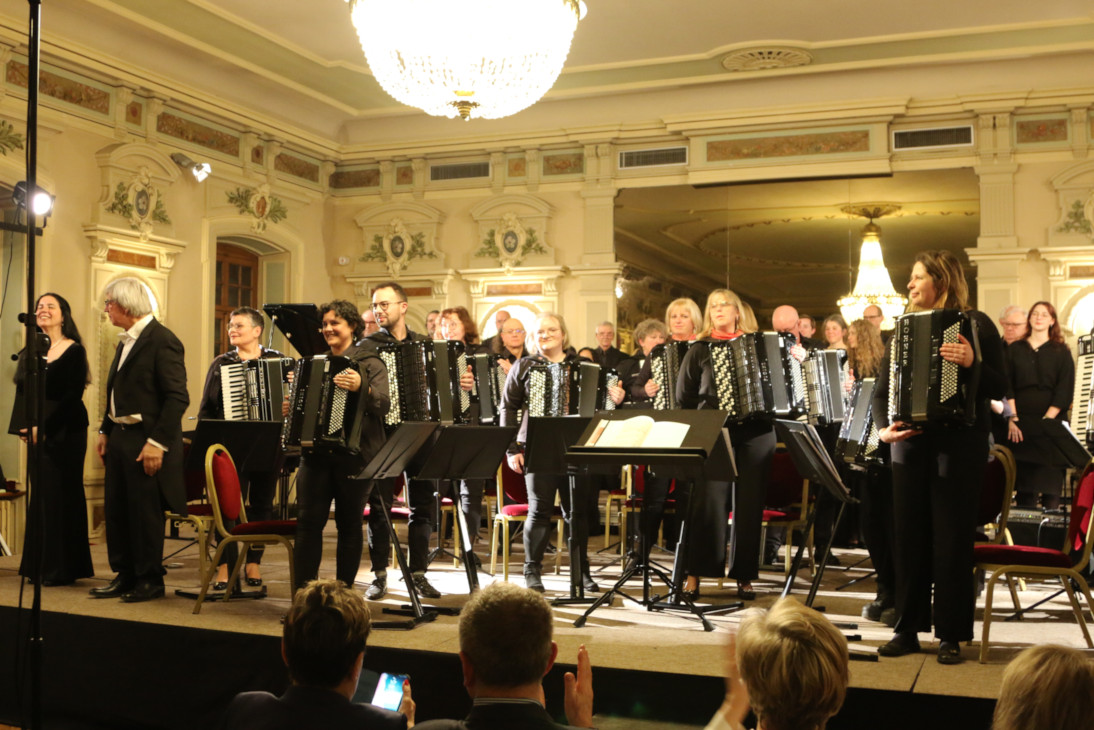 Portée par cette belle complicité, l’Académie enrichit aujourd’hui son univers à travers des expériences chorales inédites, mariant avec audace l’accordéon aux voix sur des œuvres ambitieuses telles que la Petite Messe solennelle ou la Misatango. Cet élan de partage s’illustre également par une forte ouverture à l’international, menant l’orchestre au-delà des frontières lors de concerts transfrontaliers et de tournées européennes, de l’Allemagne à la République Tchèque. Plus que jamais concentrée sur la joie simple et sincère de la musique partagée, l’Académie fait de l’Harmonie bien plus qu’un idéal sonore : c’est l’état d’esprit qui anime chaque rencontre, chaque note et chaque représentation depuis 2025.